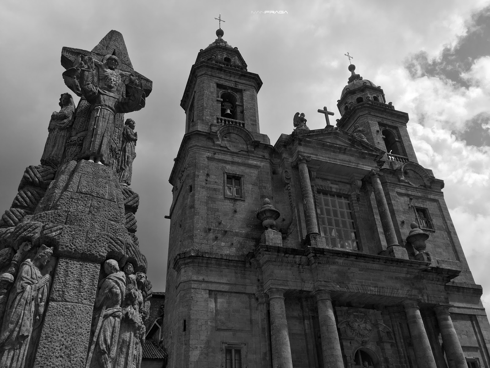 Dende que habito en Compostela, nesta húmida e triste capital galega, nesta pequena e monumental encrucillada de calexas, fico namorado do silencio que agochan os seus muros, das badaladas que escoito entre murmurios, das pozas onde se reflicten os séculos finados. Namorei da súa historia, do seu tempo pasado, presente en cada torre, en cada parede, en cada crus i en cada arco, escrita coma a piolla no cadeirado, no granítico barro dos oleiros de cuarzo, mica e feldespato. Percorrín Compostela docemente, co agrado e a timidez, coa a loucura e a placidez propias dun inxenuo namorado. Detívenme a ollar en silencio a súa grandeza nas fontes, nos soportais e nas prazas, na multitude de rúas que se abrazan nesta pétrea e misteriosa capital, nesta améndoa histórica, lendaria e tristeira, nesta meiga e fascinante Compostela Monumental.